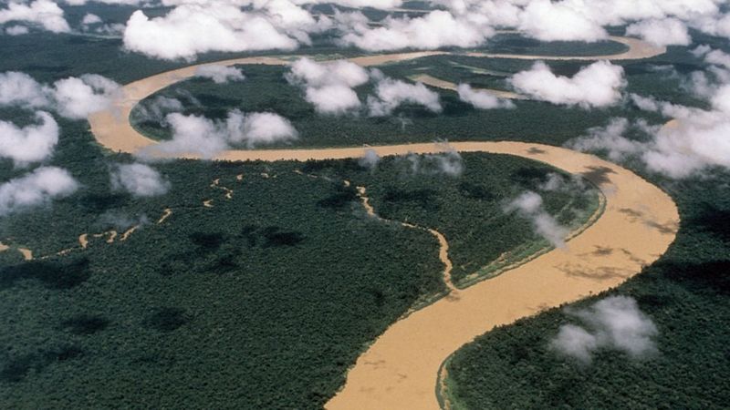 Imagem aérea do Rio Japurá (Foto Crédito, Getty Images) – O rio Japurá, na fronteira entre o Brasil e a Colômbia, é afluente do rio Solimões