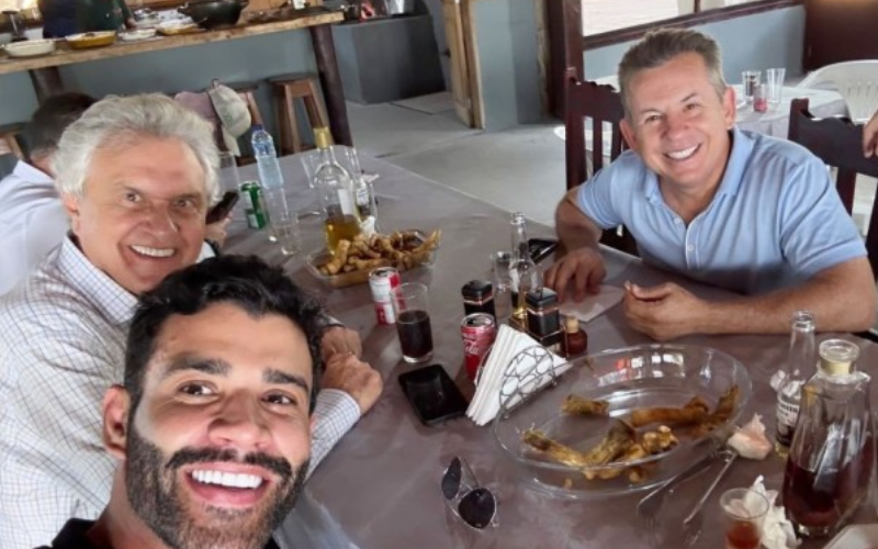 Gusttavo Lima come peixe com Mauro Mendes, sobrevoa rio e visita fazenda em MT