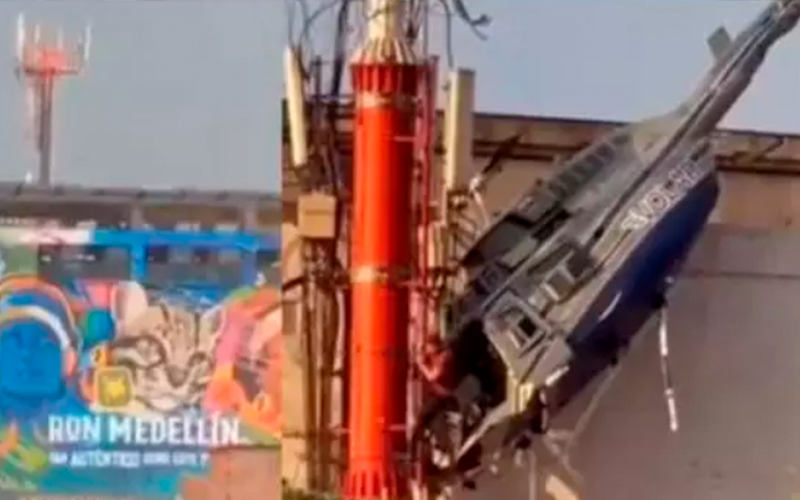 Helicóptero com seis pessoas a bordo cai e fica pendurado em Medellín; todos sobrevivem