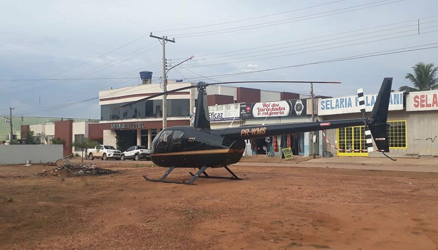 O helicóptero de propriedade particular [nome não divulgado] fez um pouso em um lote baldio no bairro Rui Pires de Lima em Novo Progresso.