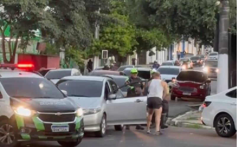 Homem de 40 anos foi preso após agredir agentes de trânsito da Secretaria Municipal de Segurança, Ordem Pública e Mobilidade (Segbel), na tarde desta quinta-feira (17), em frente ao Hospital Amazônia, na avenida 9 de Janeiro. A confusão foi registrada em vídeo por testemunhas e circula nas redes sociais, mostrando o momento em que o suspeito parte para cima dos agentes, chuta o retrovisor da viatura oficial e provoca tumulto no local.