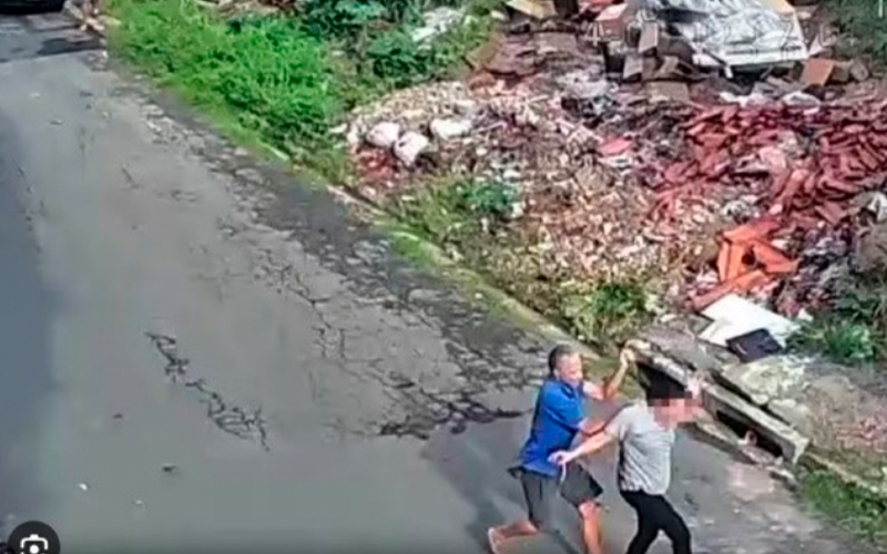 Cezar Souza da Conceição partiu para cima da mulher e a agrediu com golpes de faca. Os ferimentos acertaram a cabeça e pescoço dela. VEJA VÍDEO