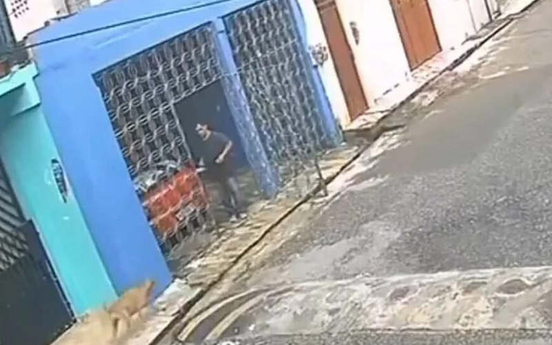 O vídeo que circula pelas redes sociais mostra o homem que veste calça comprida e camisa escura abrindo o portão de sua casa para oferecer comida para um cachorro caramelo que estava na rua. O homem joga comida para o cão que se aproxima e começa a comer. Em seguida, o homem que estava com uma panela de água quente na mão joga no animal e fecha o portão. O animal sai desesperado mordendo a parte traseira do corpo e se debatendo com dor na rua.