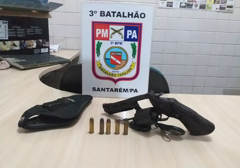 Um homem foi flagrado pela Polícia Militar portando arma de fogo após denúncias de que ele estaria fazendo disparos dentro da ocupação Vista Alegre do Juá, em Santarém, oeste do Pará.