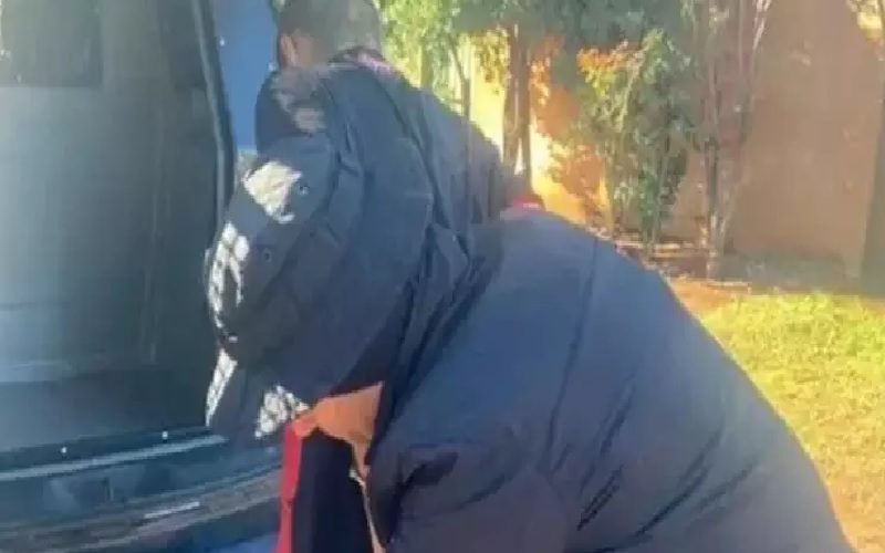 Na imagem, um homem de costas, sendo preso por um agente da polícia civil (Reprodução/PCMS-DAM).