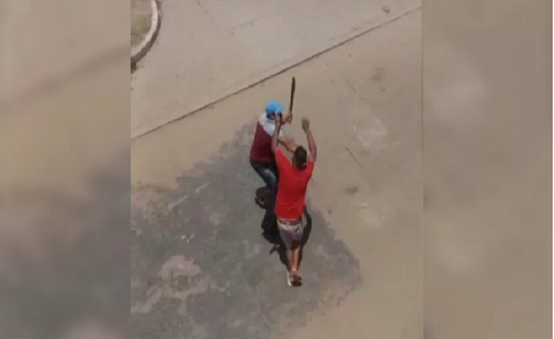 (Foto:Reprodução) – As imagens mostram um homem atacando o outro e acertando, pelo menos, dois golpes de terçado até que moradores aparecessem para separar a briga.