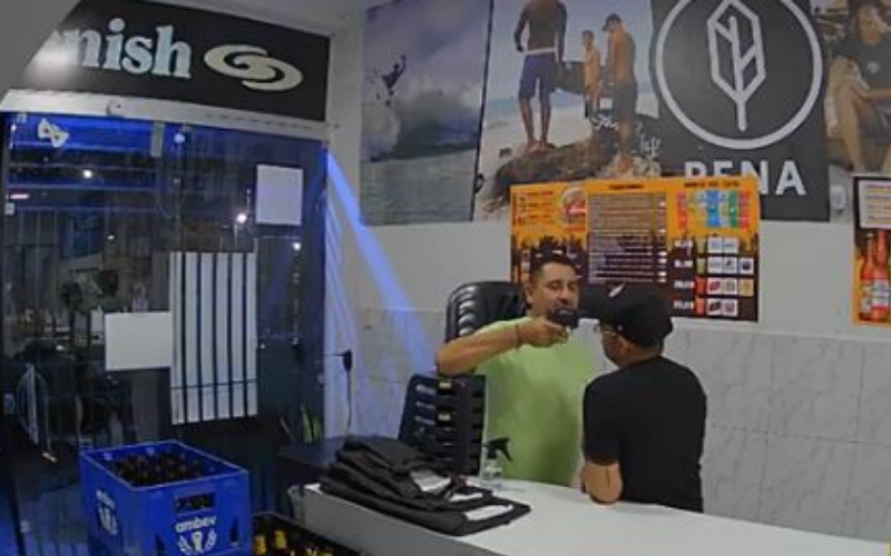 De acordo com a Polícia Civil, a vítima e o suspeito teriam discutido na loja antes do crime acontecer. Após a discussão, o suspeito saiu do local e foi até um carro, onde pegou um revólver e retornou para a loja na intenção de cometer o assassinato. No vídeo, é possível ver o momento em que o homem aponta a arma para a testa da vítima.