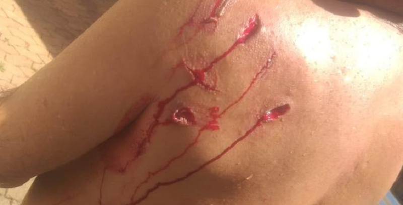 No vídeo, é possível ver o momento exato do ataque, com o animal subindo em suas costas e mordendo a região dos ombros;