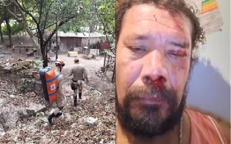 Valdinei teve arranhões no rosto, ferimento na testa, corte no nariz e machucado no olho direito. Segundo os bombeiros, ele também relatou fortes dores no peito. Os militares informaram que havia muito sangue próximo à casa da vítima.