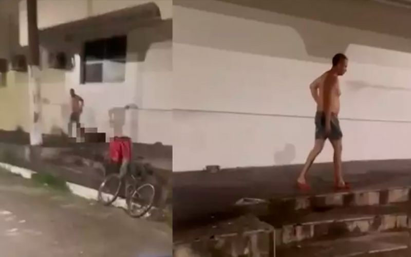 A filmagem que circula pelas redes sociais, mostra o homem, vestindo apenas um shorts, já se afastando da vítima, que permanece no chão de uma calçada de barriga para cima, aparentemente sem roupas. O suspeito ainda ajeita o calção antes de ir embora como se nada tivesse acontecido.