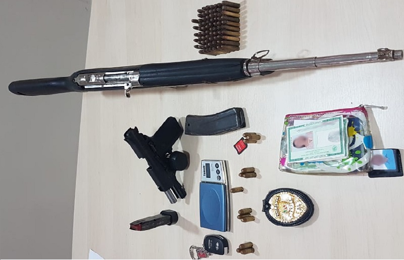 Na prisão, a Polícia apreendeu arma ponto 40 com treze munições e um fuzil ponto 22 com 74 munições.