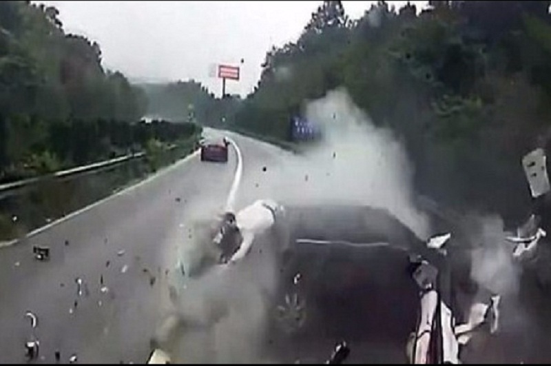 Uma cena absolutamente impressionante. Um passageiro, que não usava cinto de segurança, foi arremessado pelo parabrisa traseiro do carro em que estava. O veículo colidiu com um grade de proteção em rodovia em Chongqing (China).