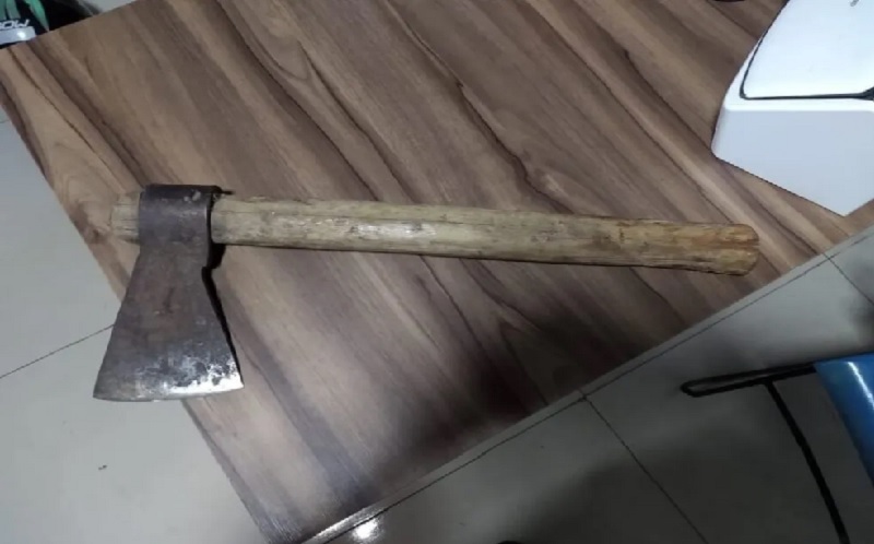 Machado utilizado pelo homem para atacar policiais. — Foto: Ascom PMPA