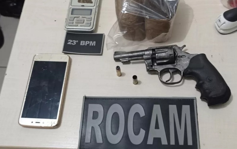 Na casa onde ocorreu os tiros foram encontrados um revólver calibre 32 com duas munições e 539 gramas de maconha. Também foram apreendidos uma balança de precisão – usada para o tráfico de drogas – e dois aparelhos celulares.