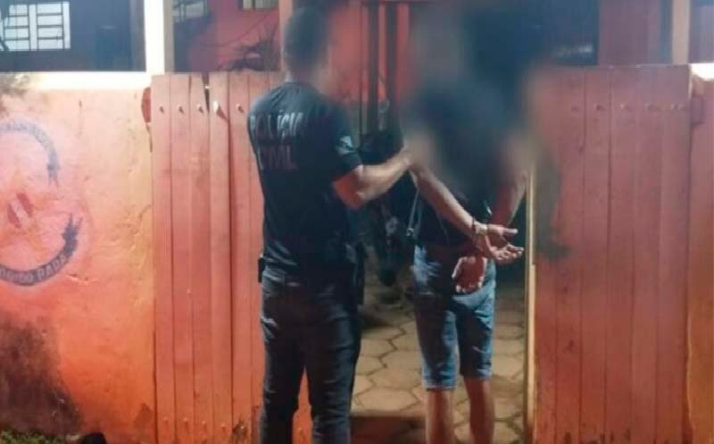 Os policiais civis imediatamente saíram em diligências e conseguiram prender o agressor em flagrante, o qual ainda estava em sua casa, na Rua Quinze de Novembro, Bairro Boa Esperança.