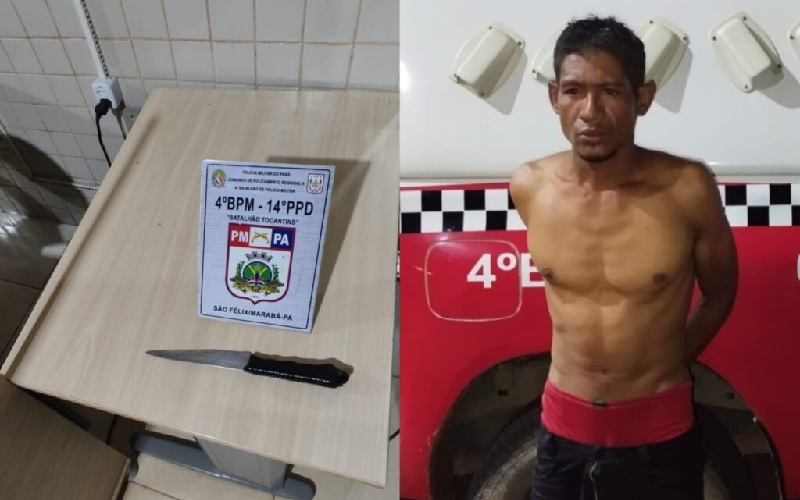 Na madrugada desta quinta-feira (27), um homem identificado como Francisco Santos Souza foi preso após uma tentativa de assalto na Travessa Plínio Pinheiro, no Núcleo São Félix, em Marabá, na região sudeste do Pará. O caso ocorreu por volta da 00h15, quando o acusado abordou uma mulher com uma arma branca, tentando subtrair seu aparelho celular.