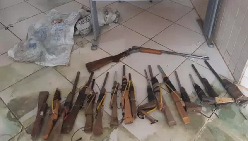 “Os militares realizavam abordagens a carros e pessoas, quando pararam um veículo que seguia pela estrada da Maritaca, apenas com o condutor. Durante a busca veicular os agentes encontraram uma espingarda, calibre. 20 e 14 armas de fabricação caseira”, divugou a PM.