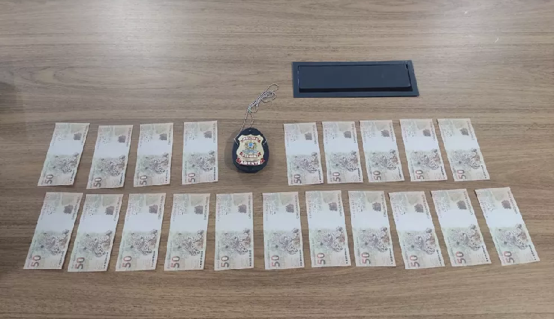 O dinheiro falso estava dividido em 20 cédulas de valor de face de R$ 50,00, totalizando mil reais.