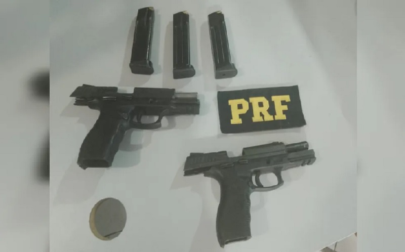 A prisão aconteceu durante abordagem de rotina da PRF a passageiros de um ônibus. Uma das armas apreendidas pelos agentes estava com a numeração raspada.