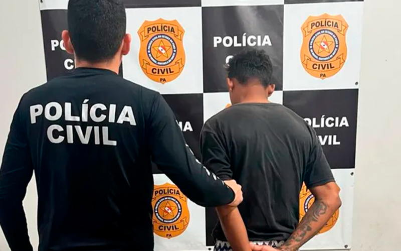 Após ser preso em flagrante, o suspeito foi conduzido à sede policial para os procedimentos cabíveis. | Foto: Reprodução / PC-PA