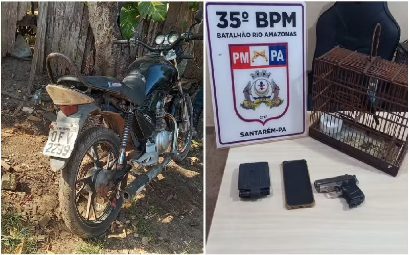 As guarnições do 35º Batalhão de Polícia Militar, prenderam no fim da tarde desta segunda-feira (22) um homem por porte ilegal de arma de fogo e crime ambiental. A ação ocorreu no bairro Vitória Régia, em Santarém, no oeste do Pará, após um acompanhamento policial que envolveu diversas viaturas.