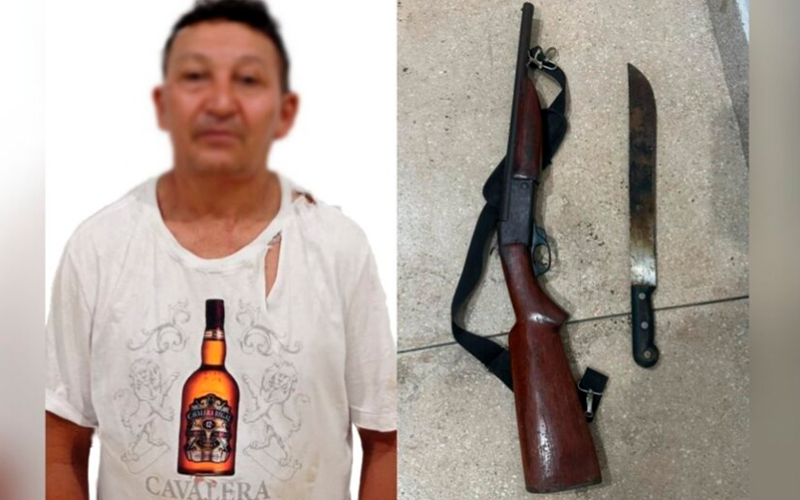 Com o consentimento da vítima, a PM realizou uma revista minuciosa na residência. Durante a operação, foram encontrados um facão e uma escopeta calibre 20, que foram apreendidos e apresentados na delegacia como provas do crime.