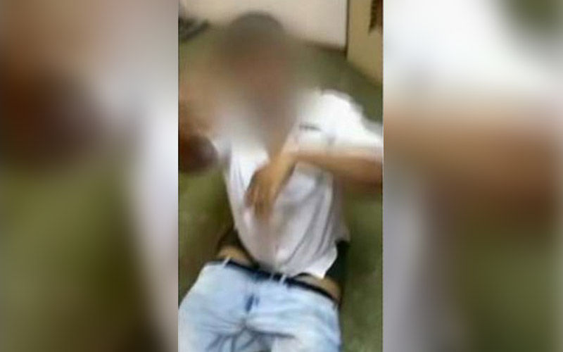 O homem teve as calças abaixadas e foi amordaçado. Recebeu choques e pauladas. |Foto:Reprodução