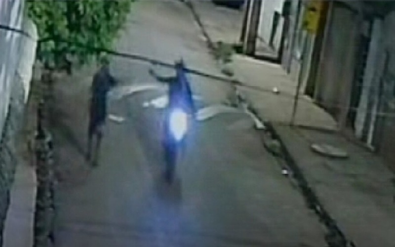 Câmeras de segurança registraram o momento em que um suspeito, que seguia em uma motocicleta, atirou diversas vezes contra a vítima, que conseguiu se desviar e não foi atingida, dispensando atendimento médico do Serviço de Atendimento Móvel de Urgência (SAMU).