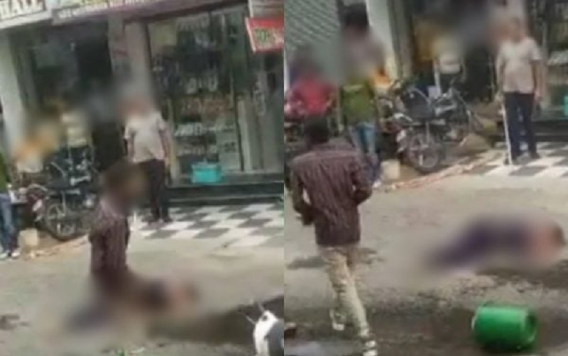 O momento em que a mulher está morta no chão e o homem parado com o facão ao lado foi registrado pelas pessoas presentes no local. Nas imagens, é possível ver a população jogando coisas no homem como forma de repúdio pelo crime.