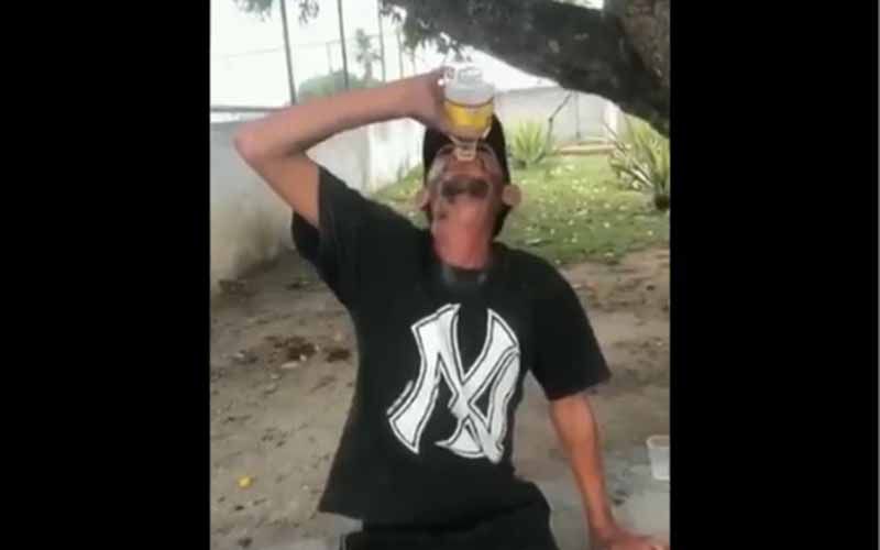 Um vídeo, que circula nas redes sociais, o homem aparece bebendo a cachaça, incentivado por um grupo de homens. “Vai morrer, vai morrer (…) Bebeu mesmo, o miserável”, diz o grupo. Logo depois, eles tentam oferecer mais uma garrafa e um deles pergunta: “Quer matar o cara, é?”
