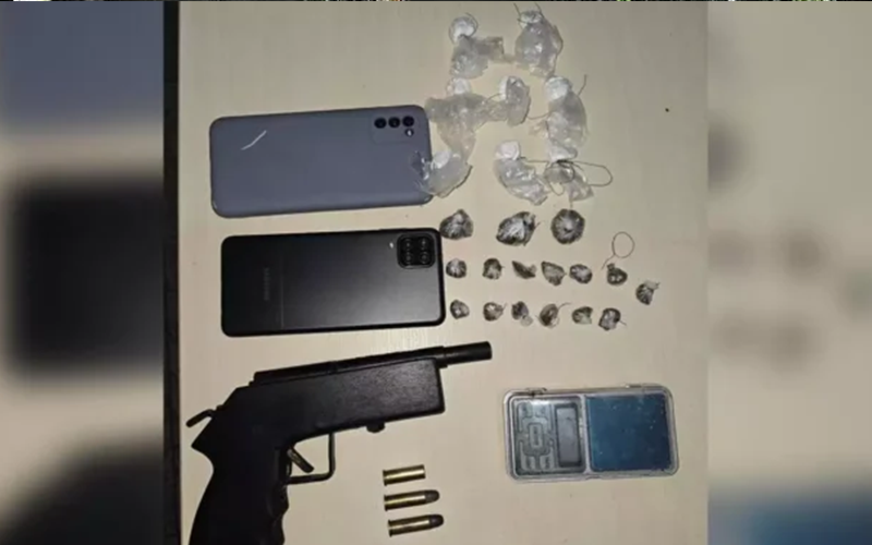 Com o suspeito, foram apreendidos drogas, três celulares e uma arma de fogo. Os militares apresentaram os itens confiscados na Delegacia de Santa Maria do Pará.