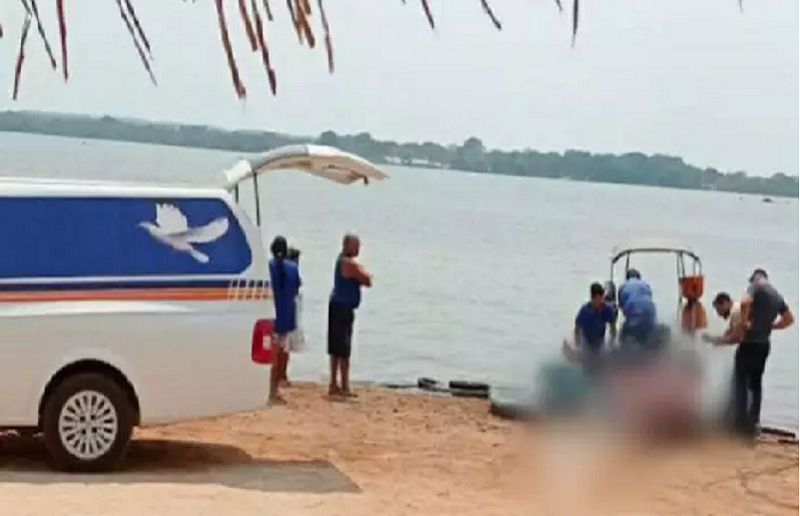 O corpo do homem foi localizado e trazido em um barco para uma área de praia, de onde foi removido por uma funerária, para exame de necropsia. (Foto:Reprodução/ Debate Carajás).