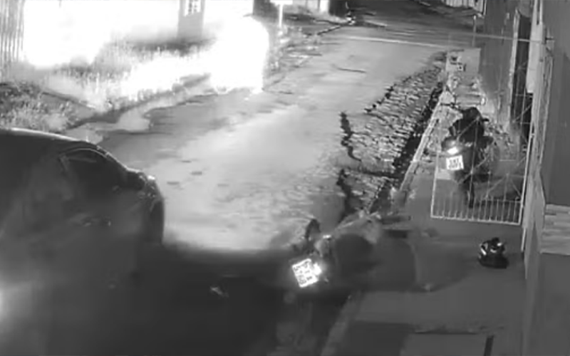 Nas imagens, um carro para no meio da rua, próximo à porta de uma casa onde três pessoas conversavam . Em seguida, os ocupantes do veículo realizaram quatro disparos em direção ao grupo. No momento do ataque, um dos homens, que estava sobre uma moto, se jogou no chão e dedo estar morto , conseguindo escapar sem ferimentos.