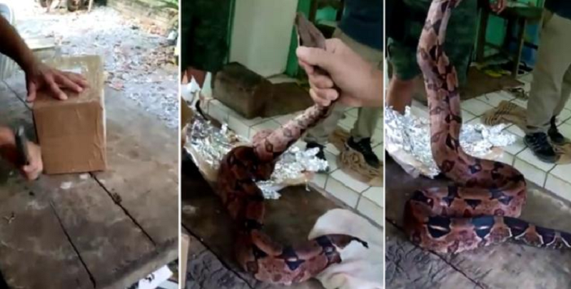 Homem tenta despachar jiboia de 1,5 m pelos Correios