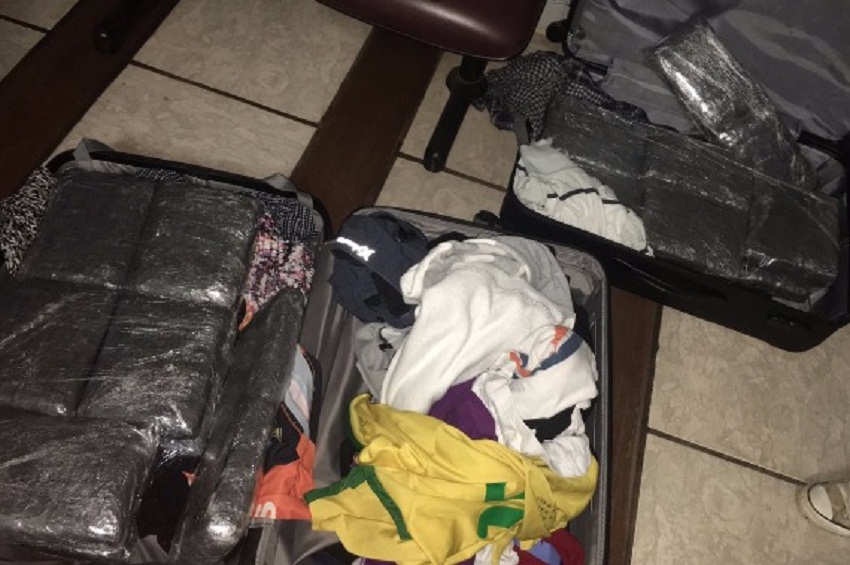 Foto: PF – Dois homens foram presos no Aeroporto de Santarém, oeste paraense, na madrugada desta sexta-feira (5), com duas malas de maconha, totalizando 13 quilos da droga. Segundo informações da Polícia Federal, os suspeitos partiram de Manaus e seguiam para o Rio de Janeiro quando foram flagrados pelos agentes. As drogas, em forma de tablete, estavam escondidas em meio as roupas dos acusados.