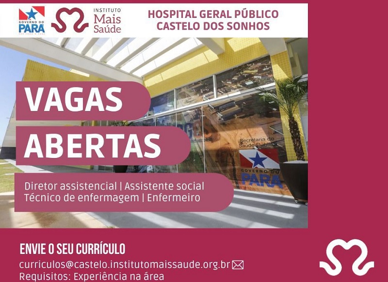 As vagas contemplam são; Diretor Assistencial, assistente Social, Técnico de enfermagem e enfermeiro (a).