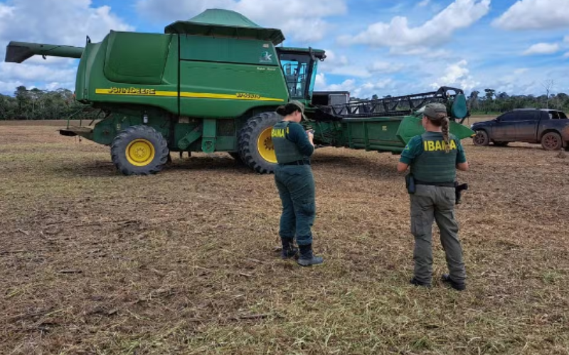 Na área irregular, também foram apreendidas 28.840 sacas de soja, que de acordo com o Ibama, serão doadas, como determina a legislação ambiental em se tratando de bens provenientes de infrações ambientais.