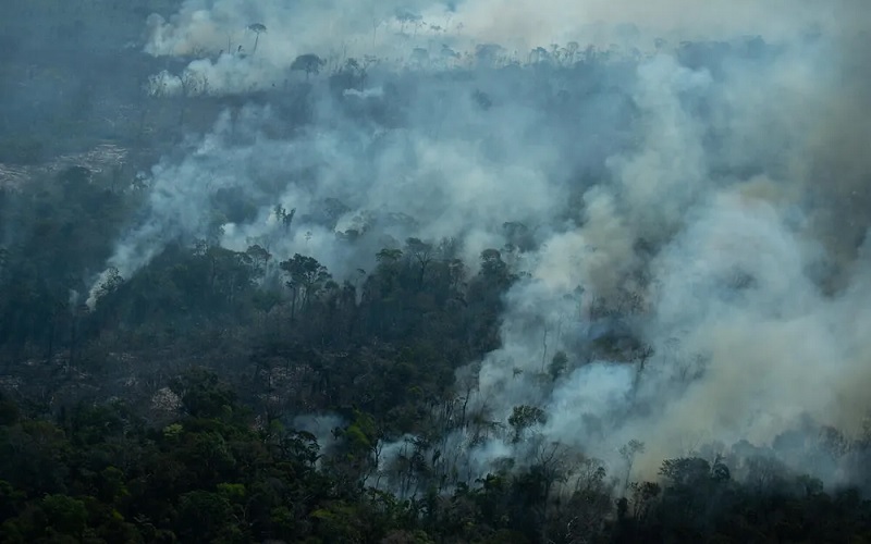 Queimada sobre área degradada no Parque Nacional Mapinguari, em Lábrea, Amazonas — Foto: Christian Braga/Greenpeace