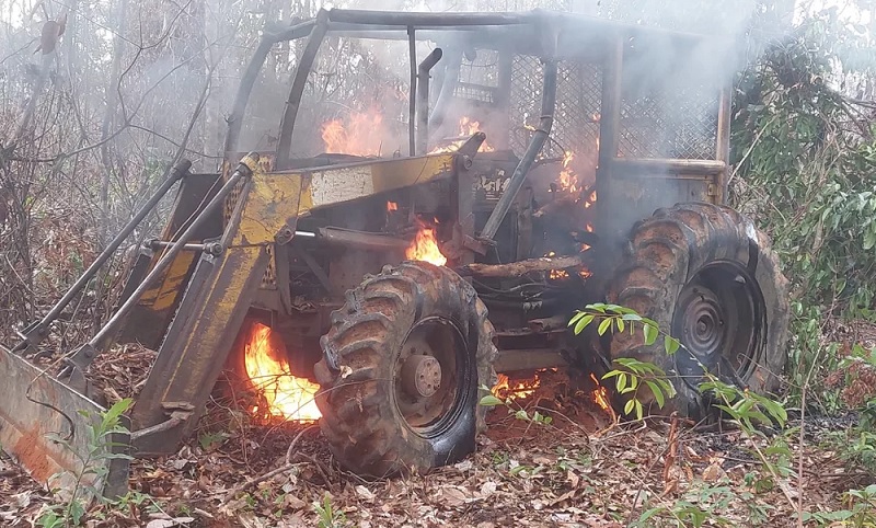 Ibama destruiu trator durante operação contra exploração ilegal de madeira no MT