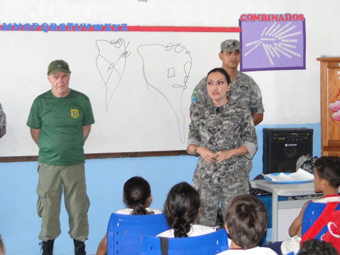 Operação está com o objetivo de orientar os alunos quanto a importância da preservação do Meio Ambiente. A palestra foi feita pela capitã da Força Nacional Hellen Siqueira e pelo coordenador da Base do Ibama em Novo Progresso Ademir Guarniero aos alunos da escola.
