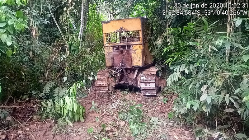 Ainda de acordo com o Ibama, um trator esteira, utilizado para abrir estradas clandestinas na Terra Indígena Arara do Laranjal, foi encontrado escondido na mata. O veículo foi destruído para a inutilização em outros crimes ambientais.