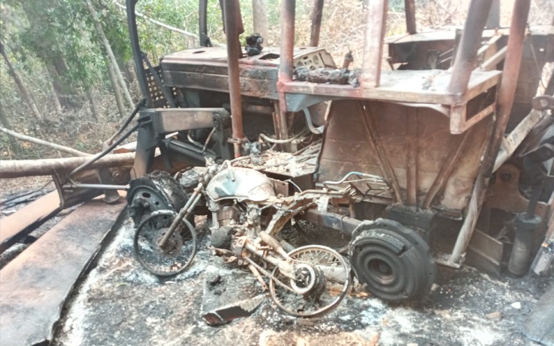 As imagens dos tratores queimados circulou na tarde deste domingo (24) nas redes sociais , com a seguinte descrição- ICMBIO destruiu trator que estava retirando madeira para reformar a ponte do Jamanxim.