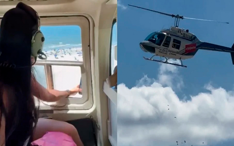 VÍDEO | Influencer joga dinheiro de helicóptero e gera confusão em praia.