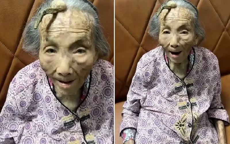 Uma chinesa de 107 anos surpreendeu o usuários de redes sociais após ser fotografada com um enorme “chifre” crescendo na sua testa.