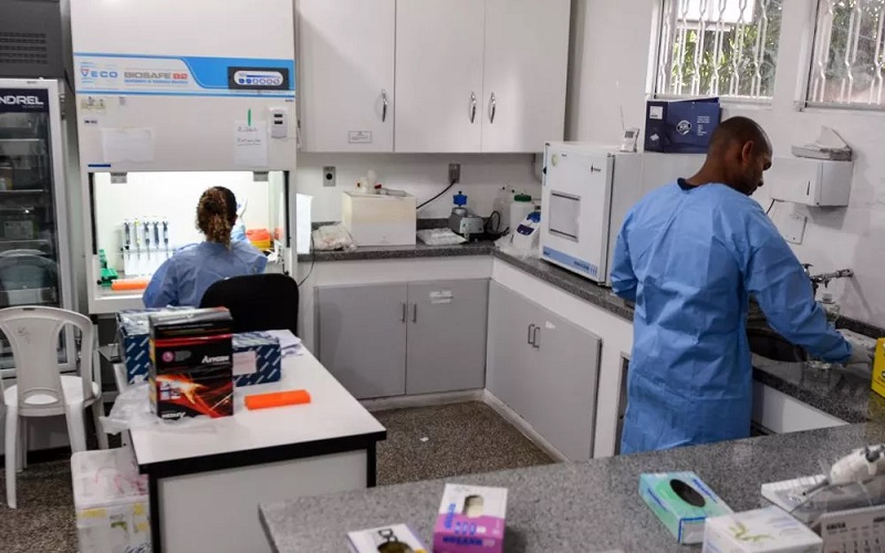 Sala de exames do Lacen, único laboratório autorizado, atualmente, para confirmar ou descartar casos de coronavírus em MT — Foto: Tchélo Figueiredo – Secom/MT