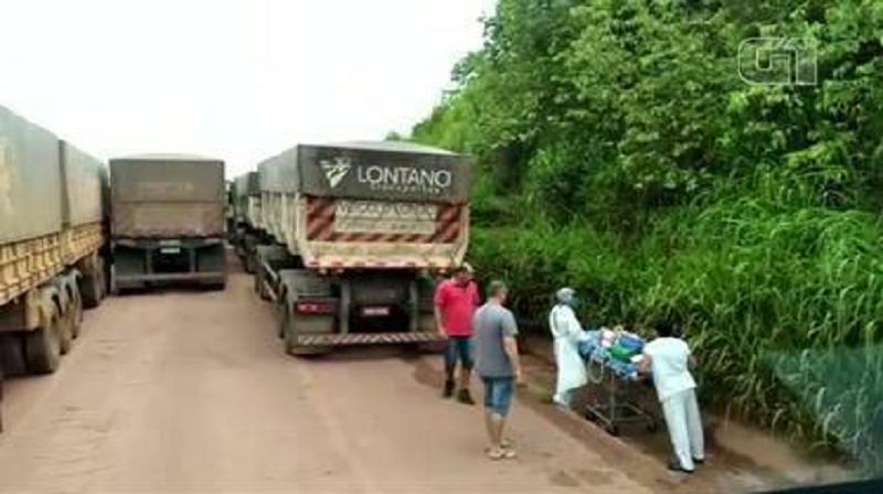 Vídeos viralizaram nas redes sociais nesta sexta-feira (12) mostrando profissionais de saúde empurrando uma maca com um paciente no oxigênio pela rodovia BR-163, a Transamazônica, no sudoeste do Pará. O paciente estava em uma ambulância, que ficou presa no congestionamento de carretas no quilômetro 30 da rodovia, próximo ao porto de Miritituba, em Itaituba.