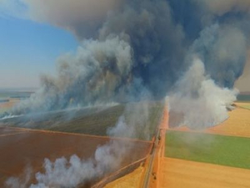 Um incêndio atingiu nesta segunda-feira (8) seis fazendas na área rural do município de Campo Novo do Parecis, a 397 km de Cuiabá, e destruiu lavouras de milho e cana na região. A cortina de fumaça chegou a assustar os moradores e motoristas que passavam pelo local. Segundo os proprietários rurais, o município não tem Corpo de Bombeiros e depende de uma cooperativa que desenvolveu um plano contra incêndios. O fogo foi controlado no final da tarde desta segunda-feira, no entanto, chegou a destruir cerca de 2 mil hectares de plantação.