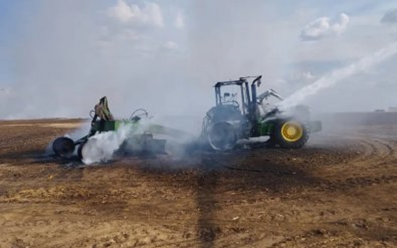 Aproximadamente 600 hectares de palha de milho e um trator foram destruídos pelas chamas.