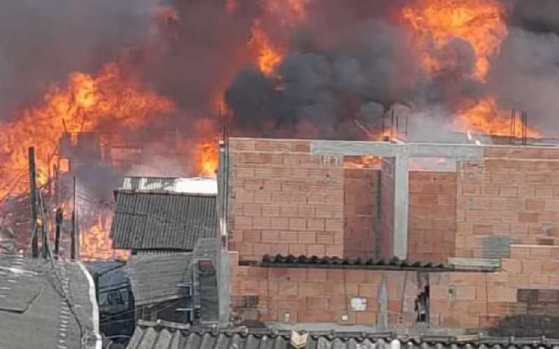 Incêndio de grandes proporções atinge dezenas de moradias em comunidade em SP; VÍDEO