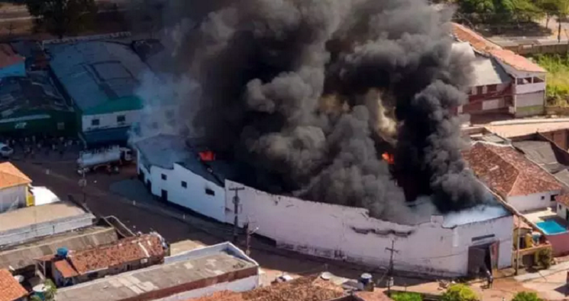 Durante o incêndio, um caminhão e um carro de passeio também foram consumidos pelo fogo dentro de um depósito de plástico que foi atingido pelas chamas e teve o teto desabado.